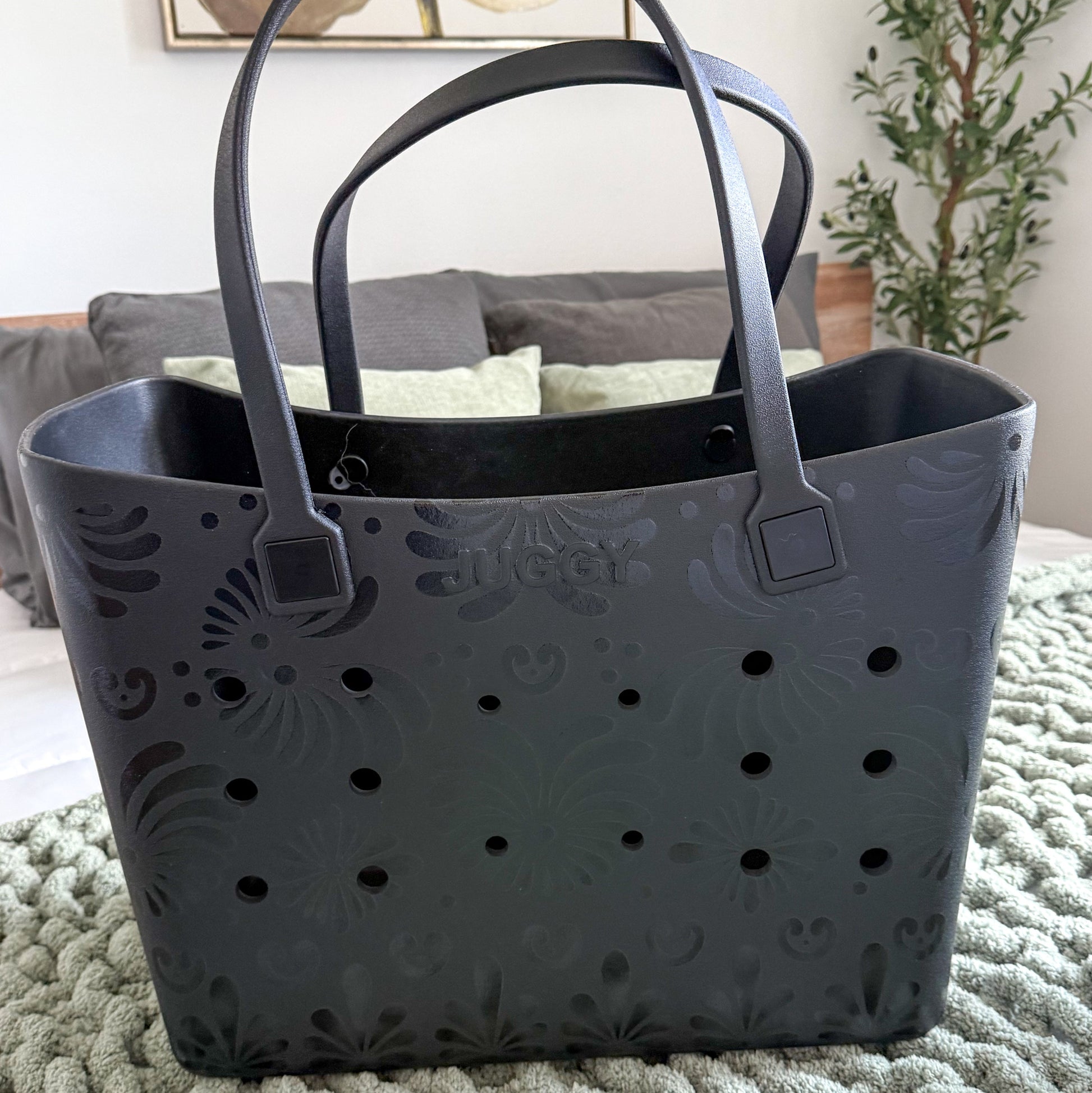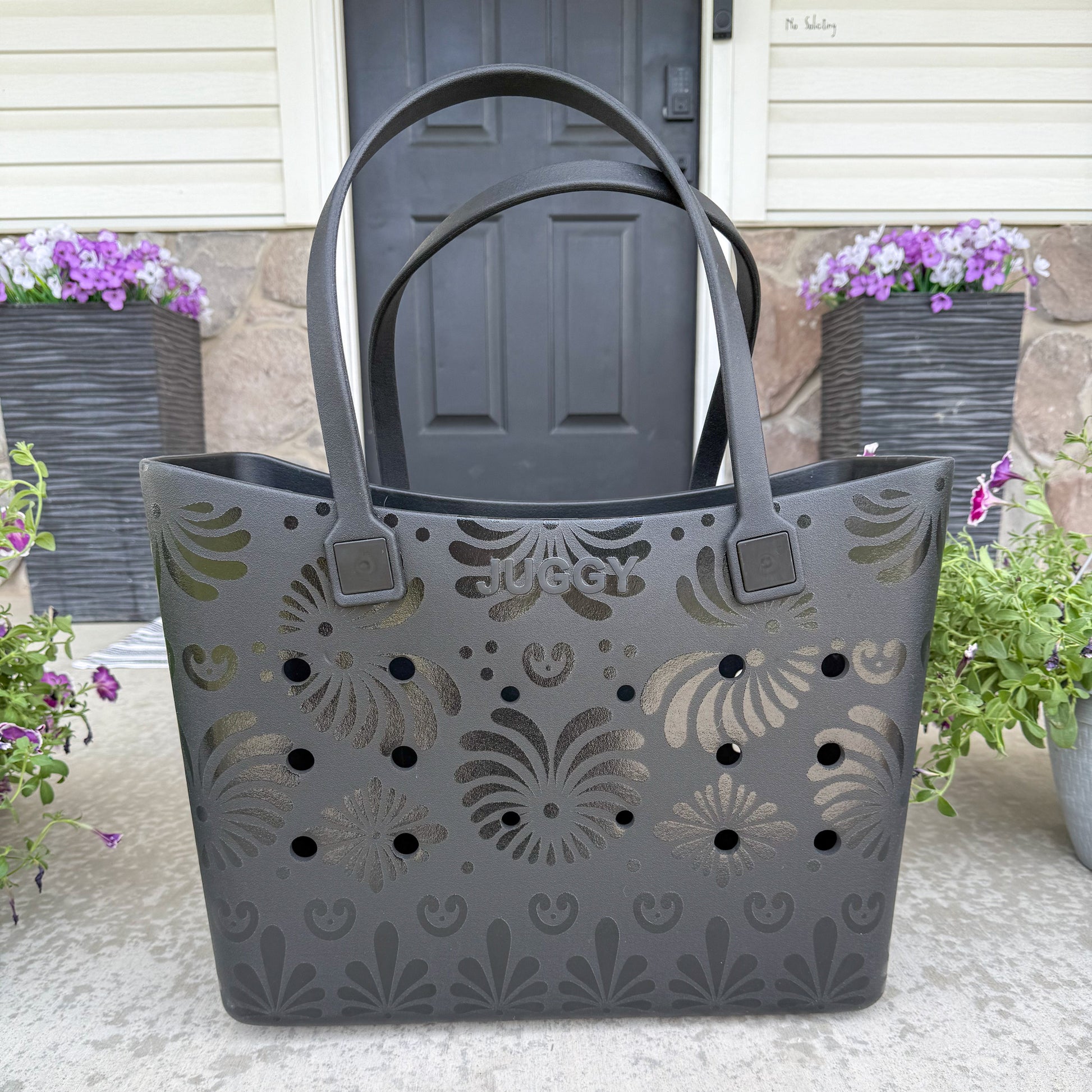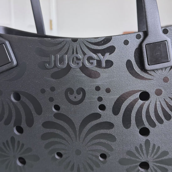 Meet the Black Talavera Tote Bag. A collaboration with our sister company JUGGY — where vibrant Mexican artistry meets everyday style! Crafted from durable rubber, this eye-catching tote is built to handle your busy days while showcasing stunning traditional Talavera.
