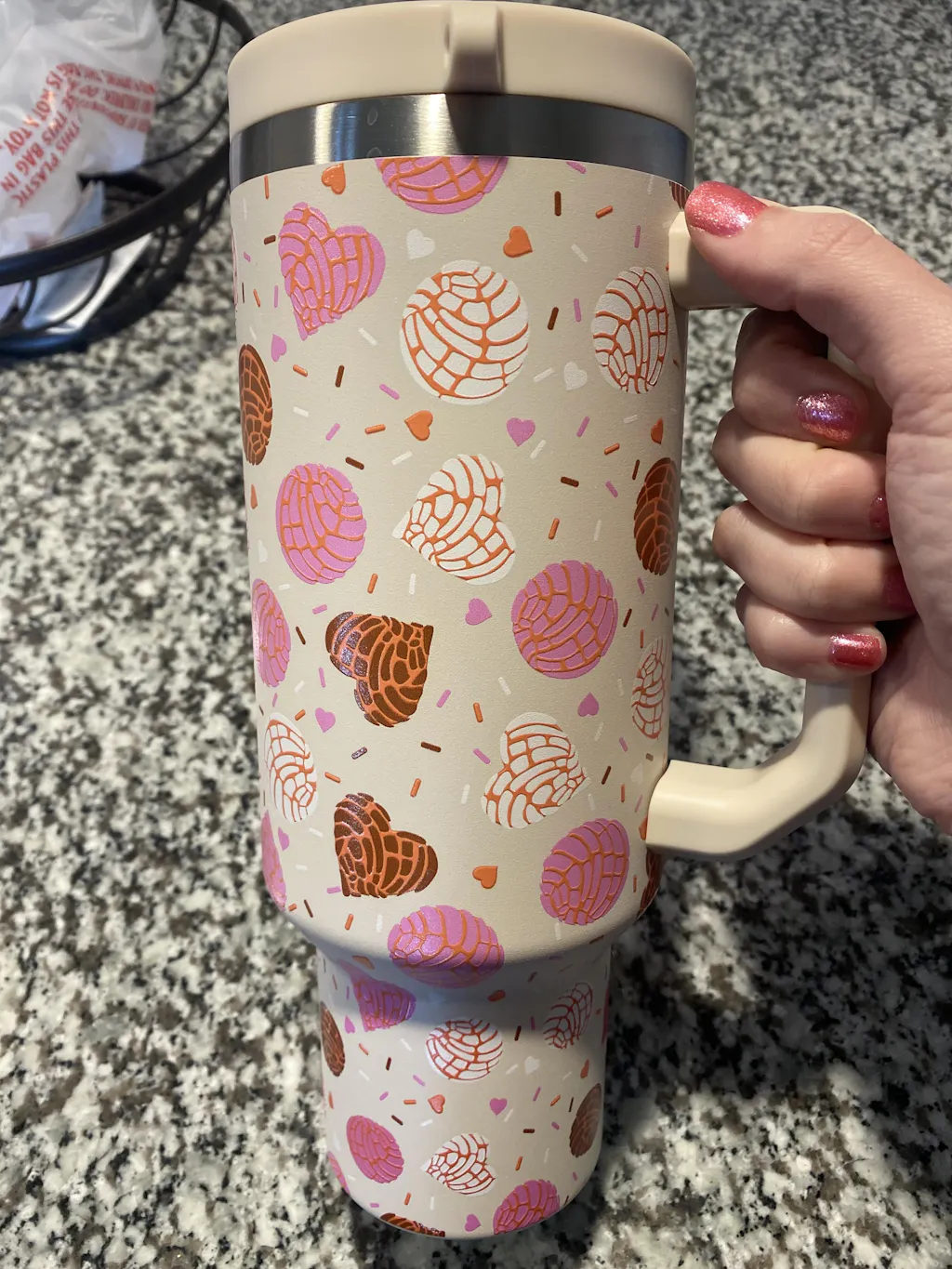 Stay hydrated and cool with this stylish Conchas 40 oz Stainless Tumbler. Keep your favorite beverages cold or hot for hours with its double-walled and vacuum-insulated design. The large handle makes it easy to carry and it fits perfectly in any cup holder. Show off your culture and be the envy of everyJUAN around!!