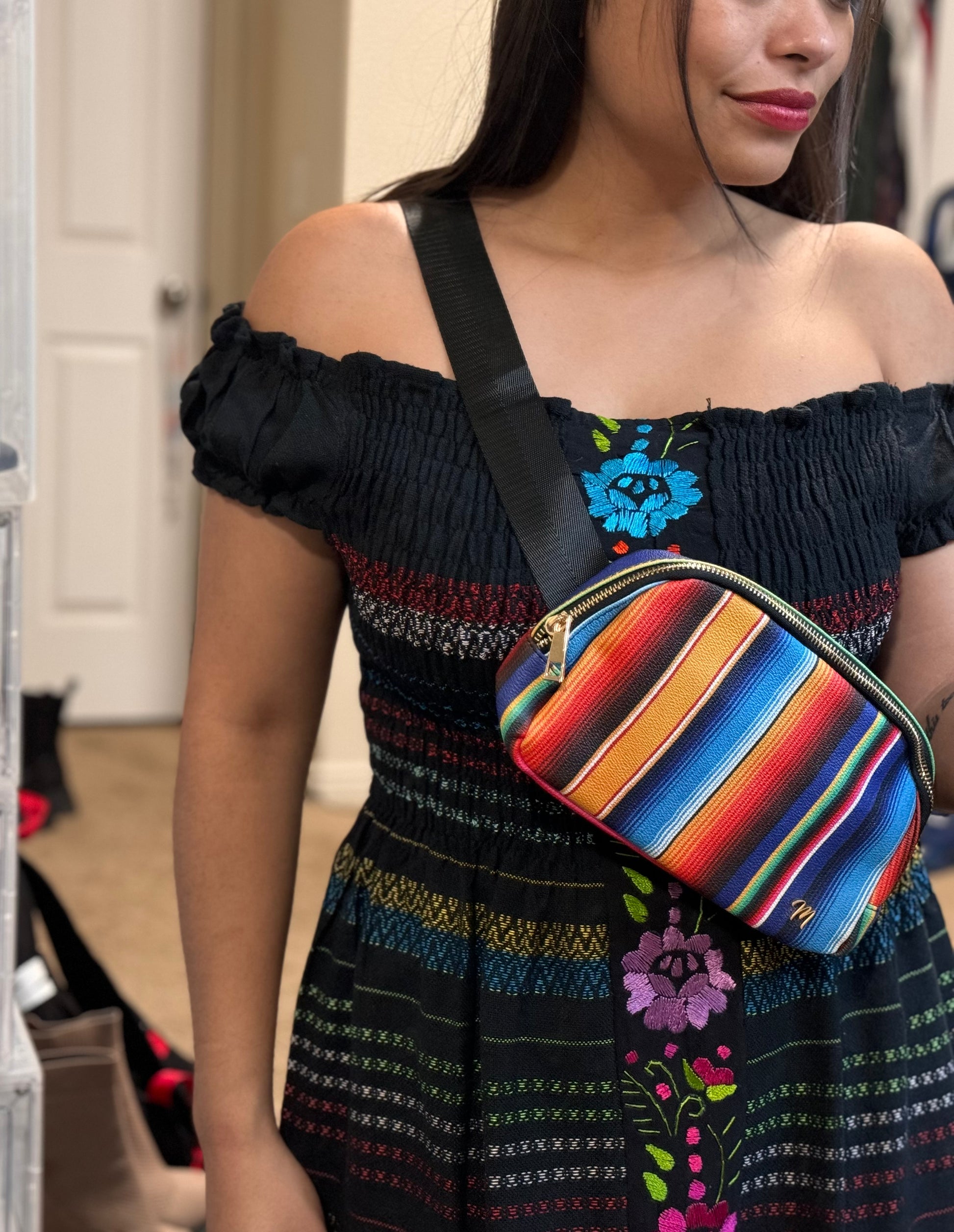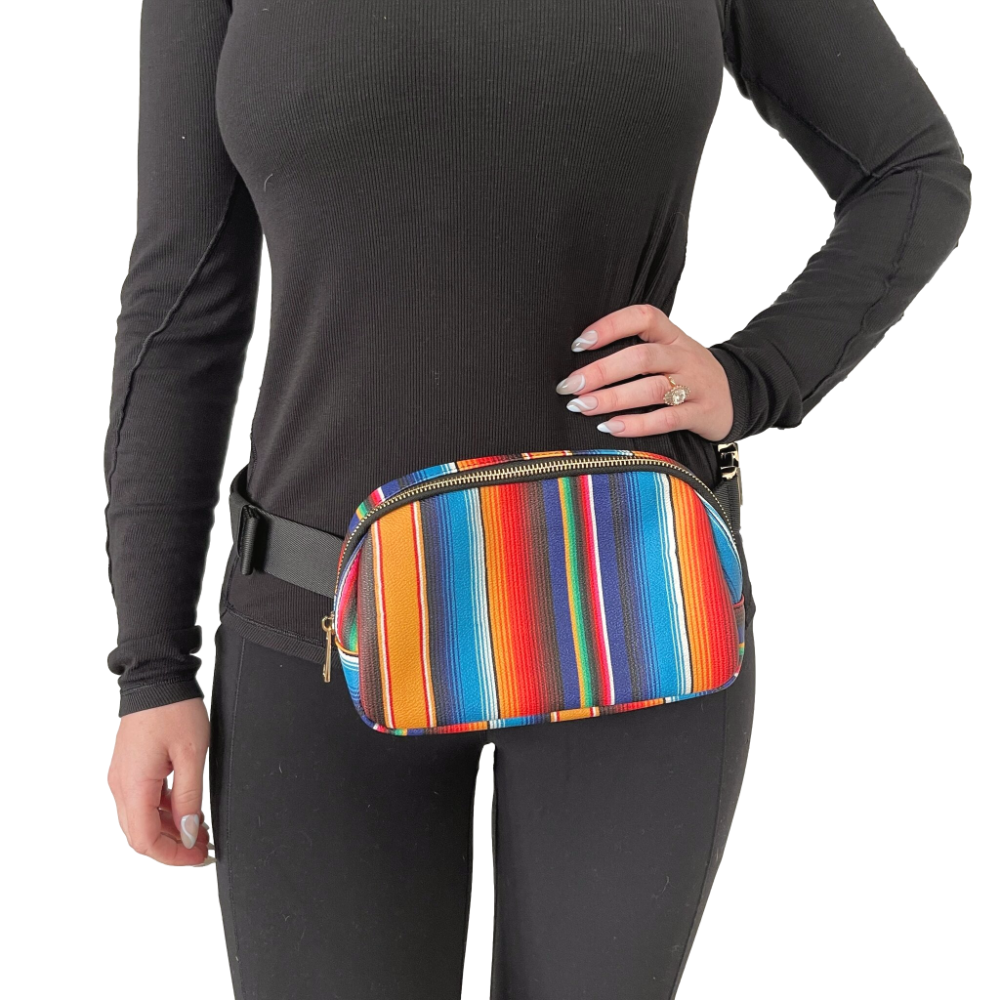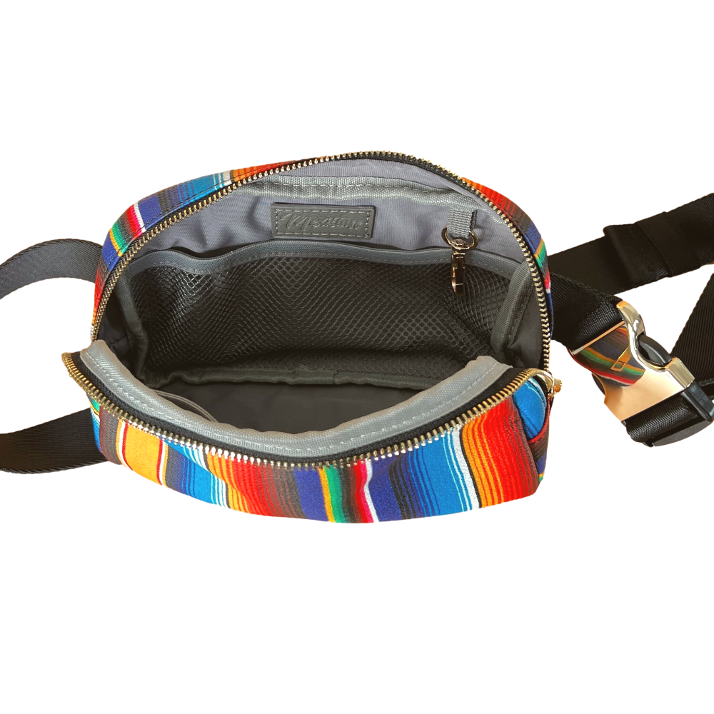 The thick, adjustable strap ensures a comfortable, customized fit, and two zippered pockets provide plenty of space for all your essentials. You'll also love the metal, sturdy buckle. Whether you're heading out for a night on the town, or just running errands around town, this bag is sure to turn heads as you show off your Mexican pride!